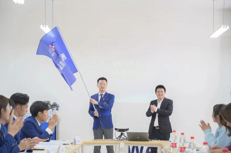各位领导老师为权益委员会代表授予徽章。学生权益委员会会长2019级王子鸣同学接受了何兴副院长授旗后,带领全体成员集体宣誓,"科学、合理、民主地代表、引导同学表达诉求,切实维护同学正当权益,共同建设美丽西塔",铮铮誓言回荡在会场。