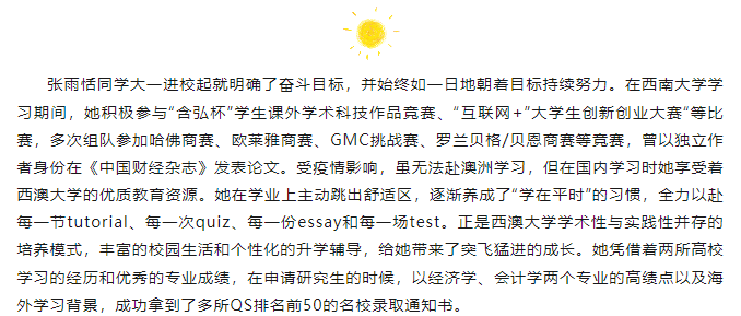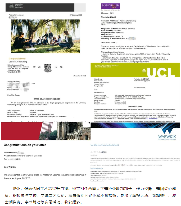 从西塔到世界|我院优秀学子张雨恬被伦敦大学学院等世界名校录取