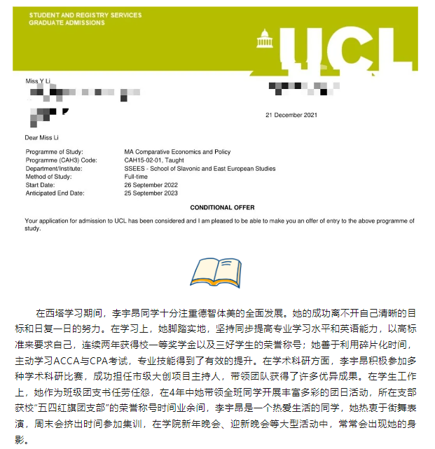 从西塔到世界|我院优秀学子李宇昂被伦敦大学学院等名校录取