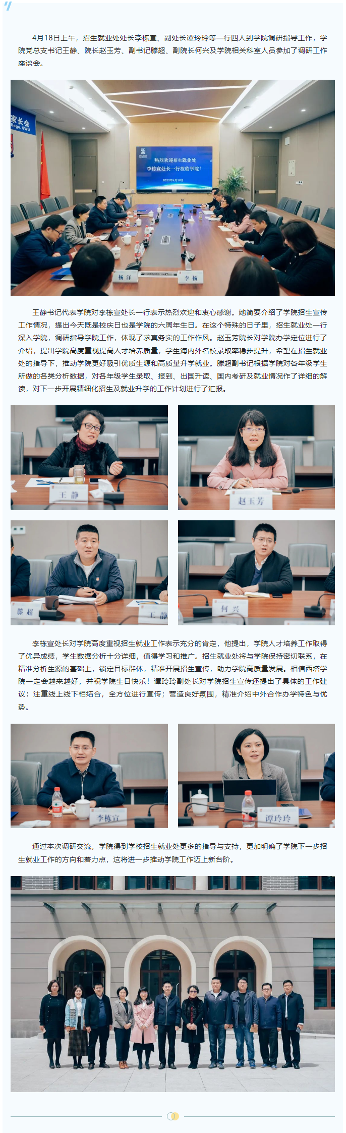 招生就业处李栋宣处长一行调研学院