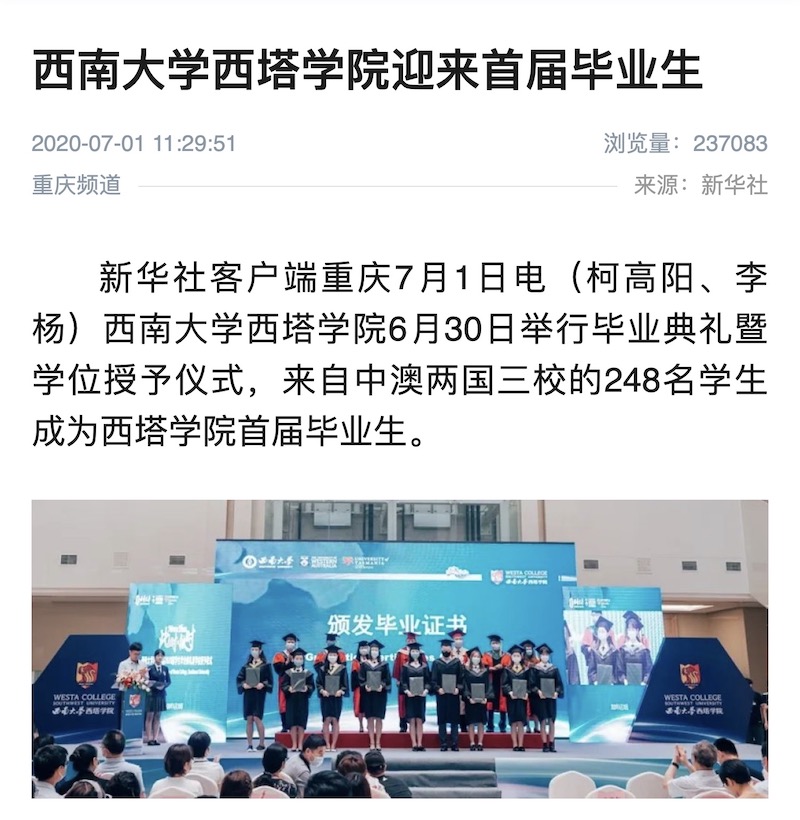 本次活动受到新华社、神州学人、重庆国际传播中心、中国高校之窗、重庆华龙网、上游新闻、重庆晚报、北碚电视台等10余家媒体广泛关注,并多形式、多角度进行报道达16次,其中新华社报道浏览量已超23万次。多家媒体在学院办学理念、办学模式和人才培养成果上进行宣传和肯定,强调学院作为中外合作办学机构在教育对外开放中的重要意义。