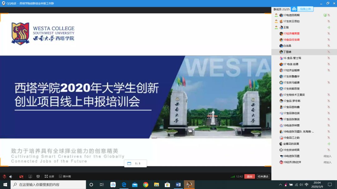 2020年3月9日20点,PA视讯官网以视频会议的形式,召开了2020年大学生创新创业项目线上申报培训会。PA视讯官网党委副书记张琨,国际事务部主任王强和21名相关同学参加了此次培训会,会议由王强老师主持。