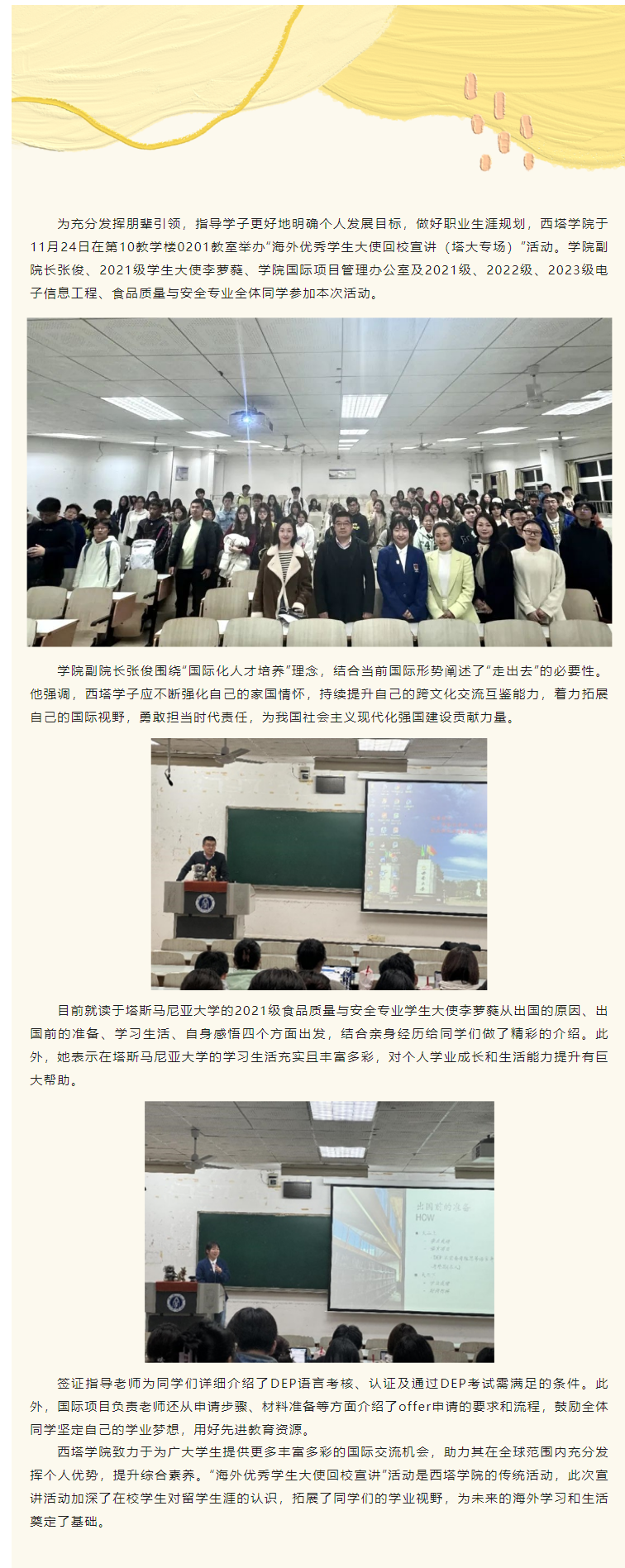 学院举办“海外优秀学生大使回校宣讲(塔大专场)”活动