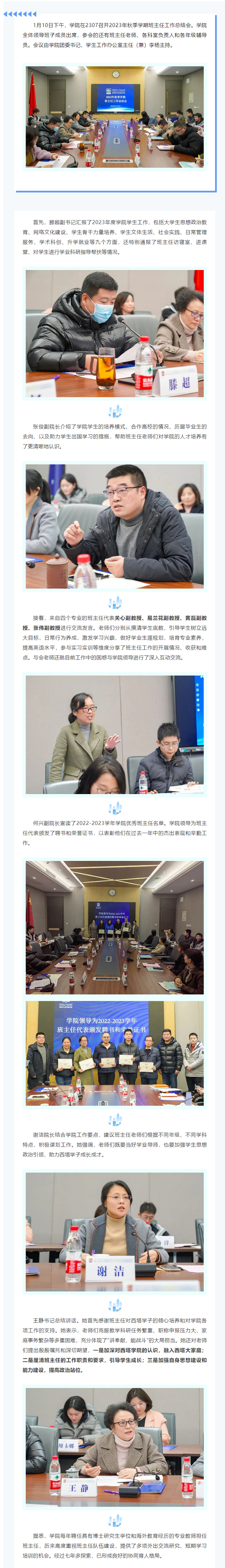 学院召开2023年秋季学期班主任工作总结会