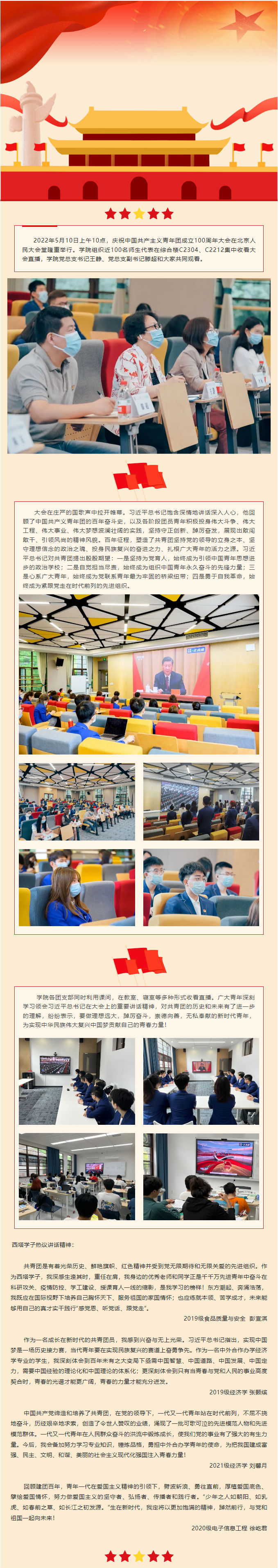 学院组织师生收看庆祝中国共产主义青年团成立100周年大会