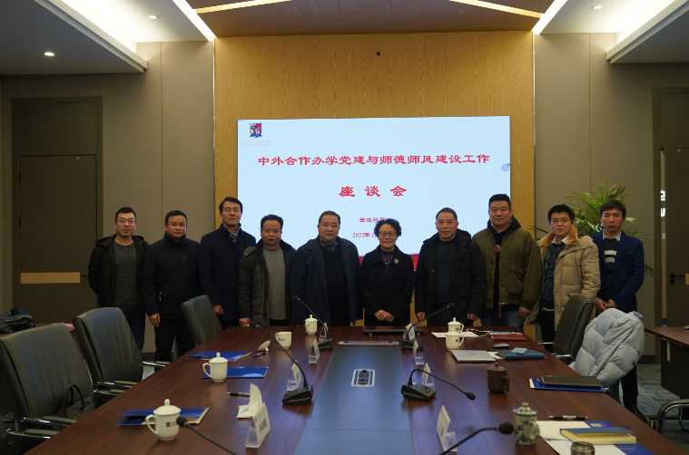 1月17日上午,学院召开中外合作办学党建与师德师风建设工作座谈会,特别邀请四个办学支撑学院党委书记、教学副院长及专业负责人出席;学院在家院领导、有关科室负责人及党支部书记参加会议,会议由何兴副院长主持。
