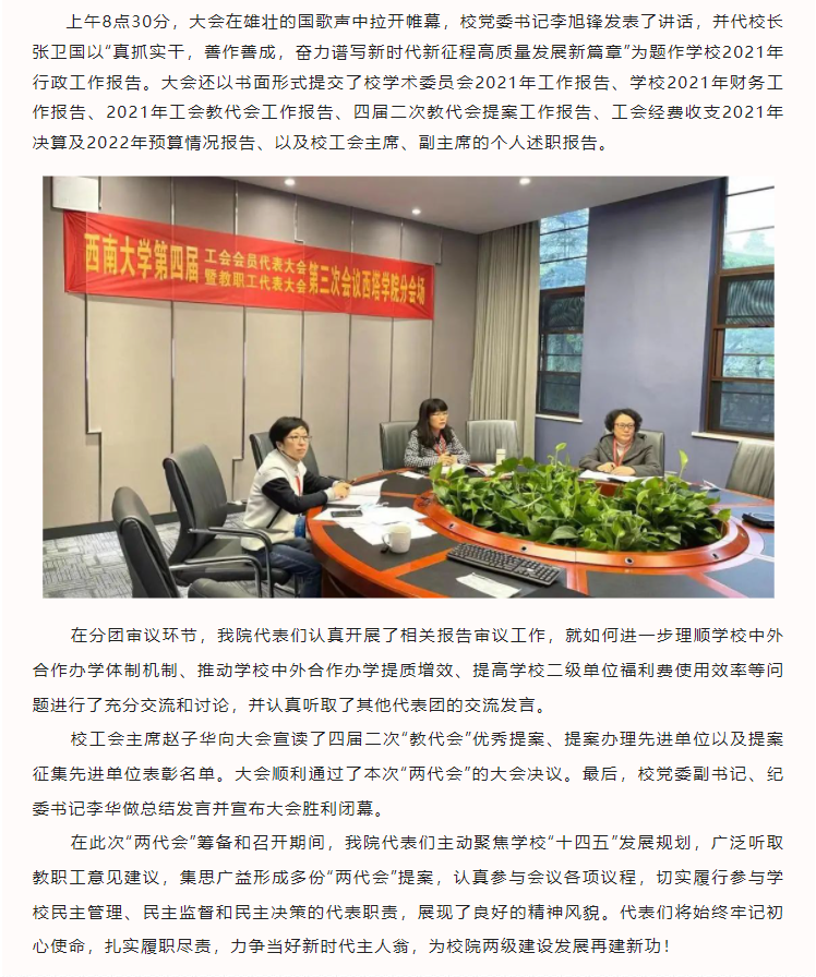 学院代表参加学校工代会、教代会四届三次会议