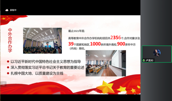 据悉,为了激发中外合作办学学子深入学习党的二十大精神的热情,把学习宣传贯彻党的二十大精神不断融入大学生思想政治教育,PA视讯官网特成立学生双语巡讲团,后续将进一步走进其他中外合作办学项目,持续深入开展宣讲活动。