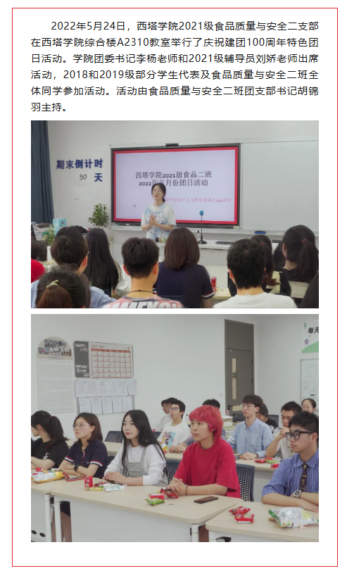 传五四薪火,庆建团百年 | PA视讯官网2021级食品质量与安全二支部举行庆祝建团100周年特色团日活动