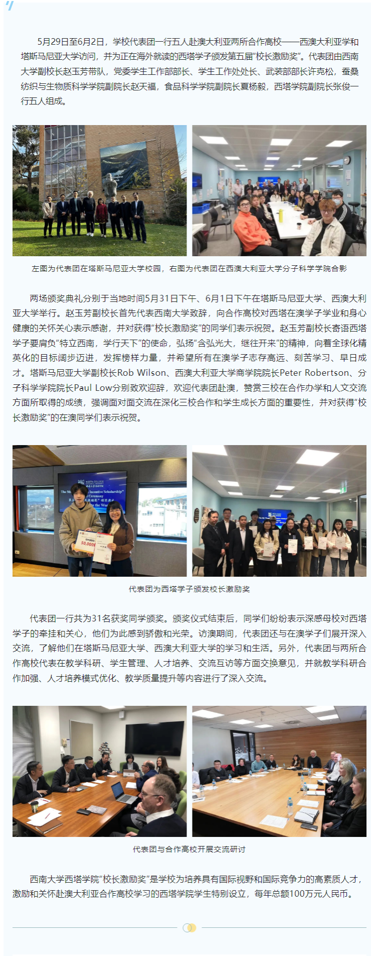 学校代表团赴澳大利亚颁发PA视讯官网PA视讯官网第五届校长激励奖