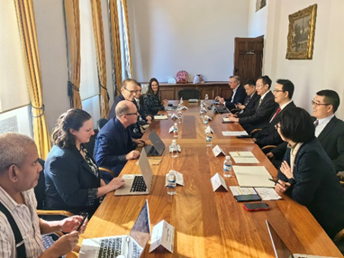 塔斯马尼亚大学常务副校长Rob Wilson、工程学院院长Tim Finnigan、农业研究院Dugald Close一行9人,西澳大学全球交流办公室David Connell、工程学院院长Tim Sercombe、分子科学学院院长Paul Low一行6人与访问团先后会谈。两校负责人分别致欢迎辞,欢迎代表团赴澳,赞赏三校在合作办学和人文交流方面所取得的成绩,强调面对面交流在三校合作和学生成长方面的重要性,并对获得“校长激励奖”的在澳同学们表示祝贺。
