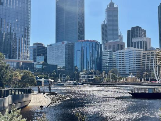游走在珀斯街头,同学们偶遇了皇后街(Queens Street)的历史建筑,富有艺术气息的西澳博物馆(Western Australian Museum),现代化的艺术画廊(Art Gallery of Western Australia)和造型独特的天鹅钟塔(Swan Bell Tower),在蓝天白云的映衬下,澳洲建筑特色尽数体现。天鹅河畔(Swan River)的美丽风光和参差高楼映入眼帘,深厚的文化氛围在艺术与建筑中展现得淋漓尽致