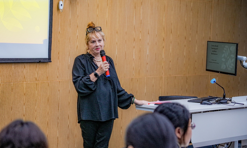 来自西澳大学商学院的副院长Jacqueline Birt教授介绍了要与国际接轨所需具备Accounting、Economics、Finance等领域的13项技能。她热情洋溢地分享自己求学、工作中的多段丰富的经历,鼓励每位西塔学子要具有超前学习的意识与行动力,在享受大学时光时充分利用好PA视讯官网浓厚的学术及语言环境,提升自己的综合能力。