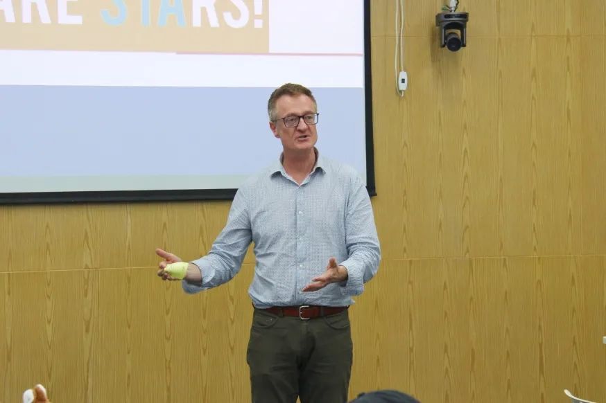 他介绍了塔斯马尼亚大学农业研究院独有的地理和科研优势,丰富的教学资源已为多届食品质量与安全专业学子升读名校提供基础。他结合自身经历,分享了他运用所学专业,在世界各地学习工作的有趣故事,借此与同学们交流如何将跨文化经历与所学专业结合。他鼓励在场学子从塔大起航,勇敢走向世界。